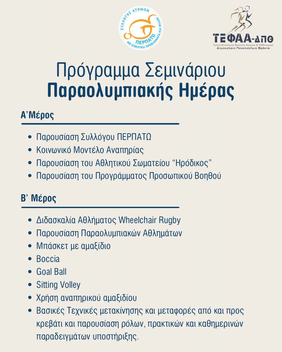 📣 Σεμινάριο Παραολυμπιακής Ημέρας